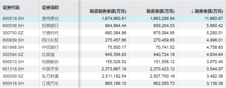 融券余额前十股票
